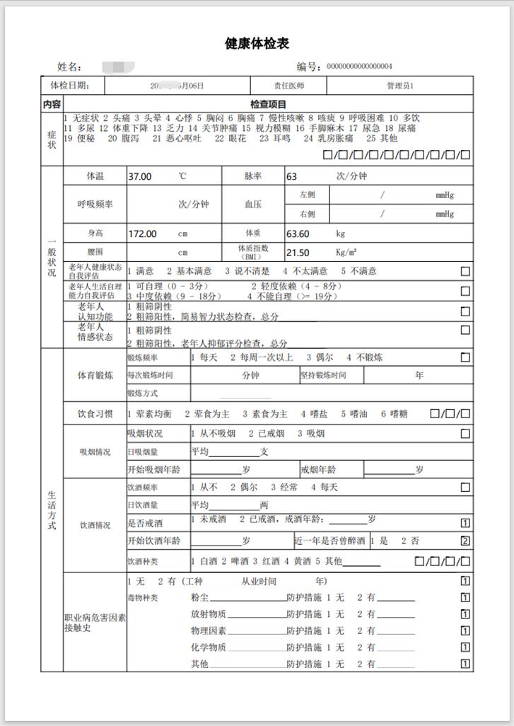 支持智能總檢評價、批量打印健康體檢報告,支持職業(yè)病/學(xué)生體檢,支持微信查看電子健康體檢報告
